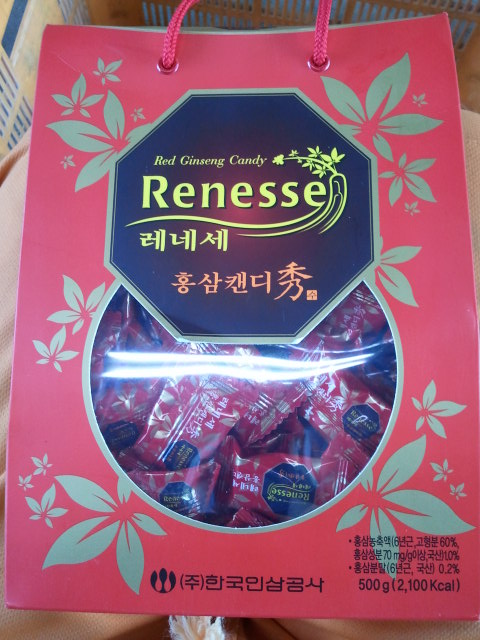 高麗人蔘の飴みたいなの。糞不味い上に一日後味が残るとか罰ゲームかよ。1粒50kcalでグリコもビックリやぞ。マジクソ。