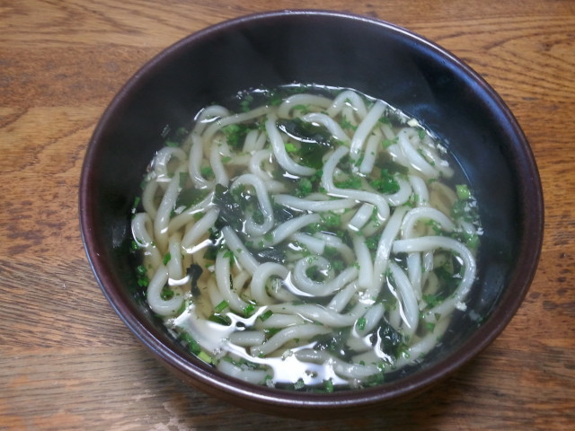 ¥100で冷凍うどんつゆ付きレンジOKなんで手軽。薬味は付いてないので自前で。