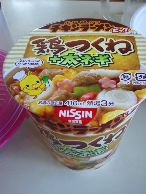 チキンラーメン系は基本味が変わらないね。つくねとネギが足されているだけだよ。普通。