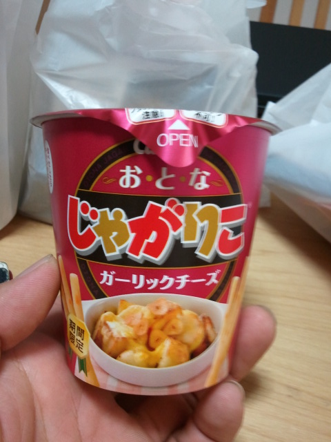 じゃがりこは毎回味の再現度が半端ない。しっかりガーリックチーズの味がする。