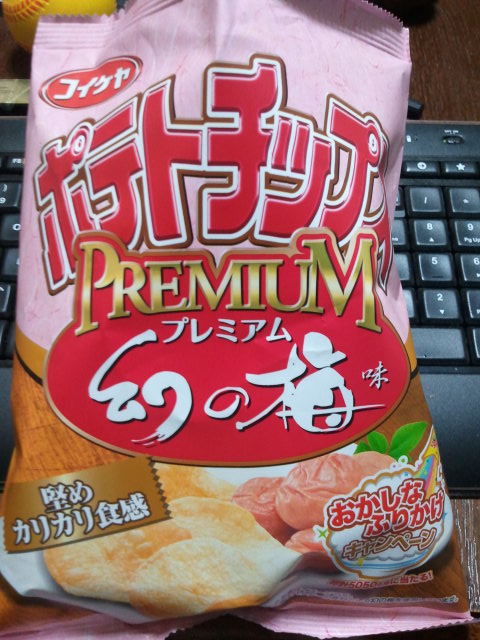 少し集めのポテチで梅味。個人的に若干甘く感じるのと酸味が足りないな。次はない。