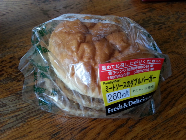 ダブルなだけに肉肉しい味、ソースもいい味だった。後はせめて野菜があれば、レタストマト挟んで食いたい。