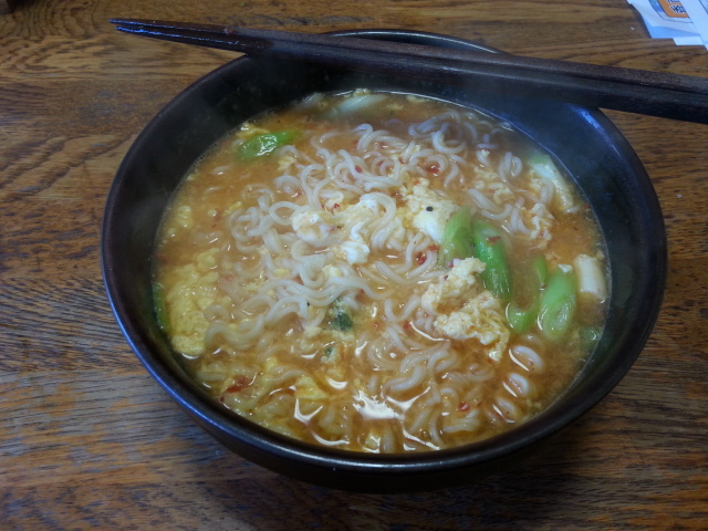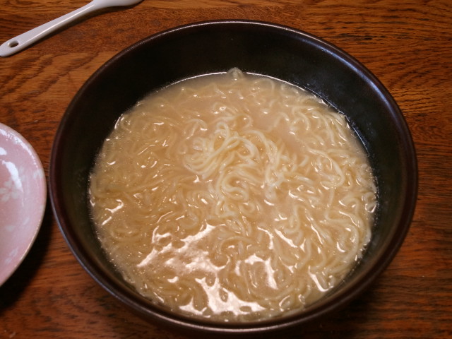 湯で時間2分の細麺。味は普通のインスタント豚骨。麺が美味いね、袋麺としてはレベル高いんじゃなかろうか。