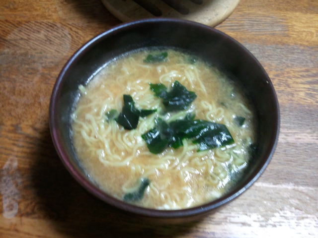 湯で時間4分の太麺。味噌と太麺の相性が凄い良い。これは味噌の袋麺としては今まで食ってきた中で一番美味いかもしれん。余談だが味噌ラーメンを作るときは卵とわかめを入れるのが俺のジャスティス。