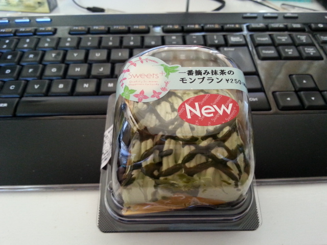 モンブラン状なんだけどふわふわクリーム、真ん中に抹茶ゼリー(甘くない)がある。相対的にこってり甘くないからサッパリ風。若干高い¥250。