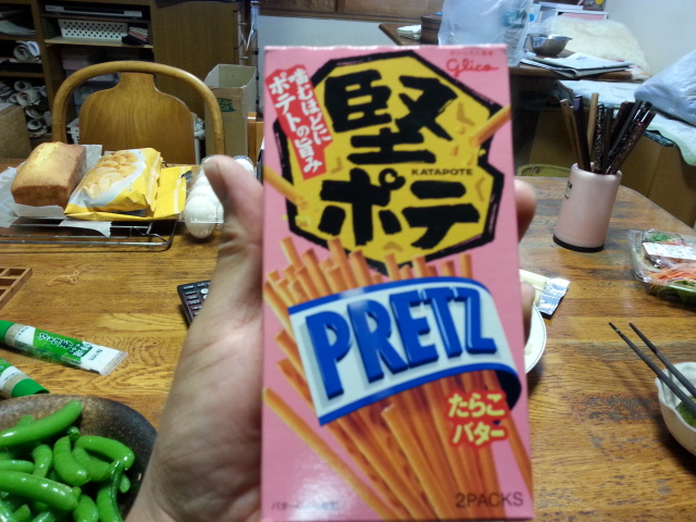 硬いプリッツ。たらこというよりは明太子ですね、辛い。あまりプリッツ好きじゃないんだけどこれは美味い。