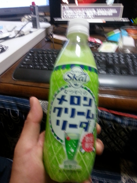 味はスコールのメロンソーダ。乳酸菌飲料の味でメロンソーダの味もする。美味しい。