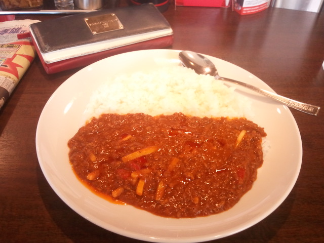 8月から10月末までの限定メニュー、昔限定メニューであったキーマカレーの辛い版だね。